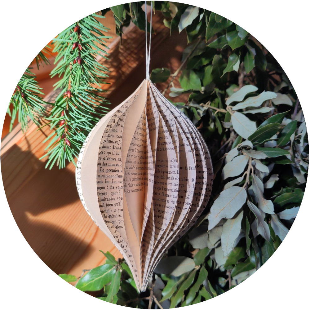 Nous créerons également de petites décorations à mettre sur la table de noël ou dans le sapin, à partir de matériaux glanés dans la nature ou d'objets de récupération ou seconde main. Pour essayer de limiter nos achats d'objets mal fabriqués et standardisés venus de l'autre côté de la planète...